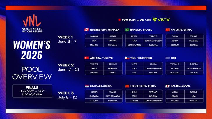 การแข่งขันวอลเลย์บอลหญิง เนชันส์ลีก 2026 (VNL 2026) เตรียมที่จะกลับมาระเบิดความมันกันอีกครั้ง ในช่วงระหว่างวันที่ 1 มิถุนายน – 26 กรกฎาคม 2026