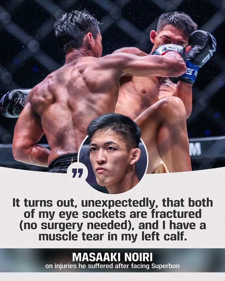 “หลังการชกจบลงผมเจอเรื่องไม่คาดคิด กระดูกเบ้าตาทั้งสองของผมหัก อย่างไรก็ตามโชคดีที่มันไม่ต้องเข้ารับการผ่าตัด แถมกล้ามเนื้อน่องซ้ายก็ฉีกขาด” มาซาอากิ โนอิริ เปิดเผยอาการบาดเจ็บหลังไฟต์
