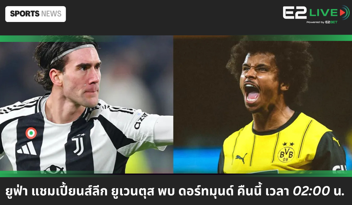 ถ่ายทอดสด ฟุตบอลยูฟ่า แชมเปียนส์ ลีก ยูเวนตุส พบ ดอร์ทมุนด์ ลิงค์ดูบอลสด เวลา 02:00 น. ...