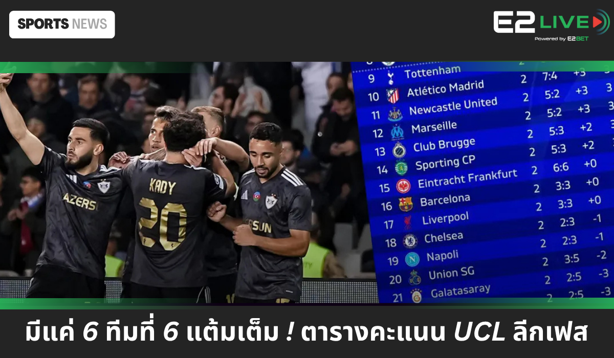 สรุปตารางคะแนนยูฟ่า แชมเปี้ยนส์ลีก 2025/26 รอบลีกเฟส หลังจบนัดที่ 3...