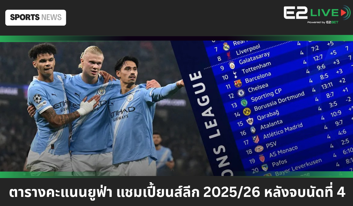 สรุปผลยูฟ่า แชมเปี้ยนส์ ลีก 2025/26 รอบลีกเฟส นัดที่ 4...